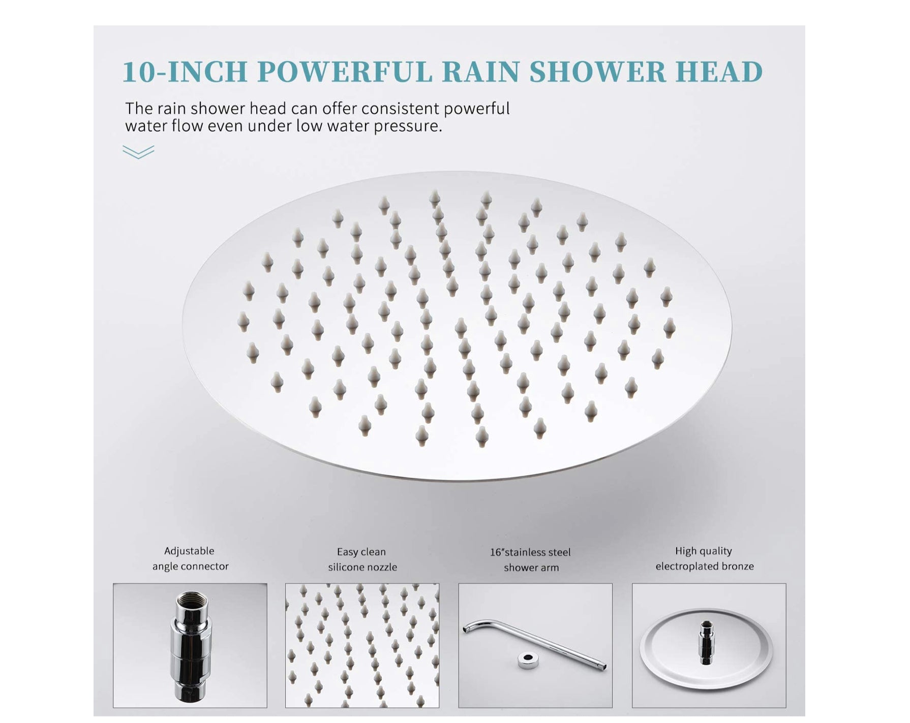 Shower System, Wall Mounted Shower Faucet Set for Bathroom with High Pressure 10" Stainless Steel Rain Shower head and 5-Mode Handheld Shower Set, 2 Way Pressure Balance Shower Valve Kit, Chrome