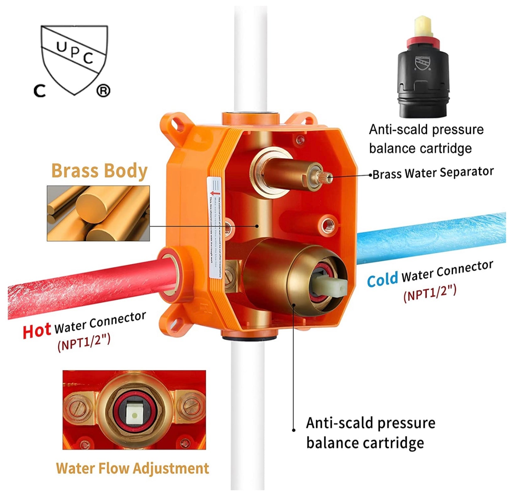 Shower System, Wall Mounted Shower Faucet Set for Bathroom with High Pressure 10" Stainless Steel Rain Shower head and 5-Mode Handheld Shower Set, 2 Way Pressure Balance Shower Valve Kit, Champagne Bronze