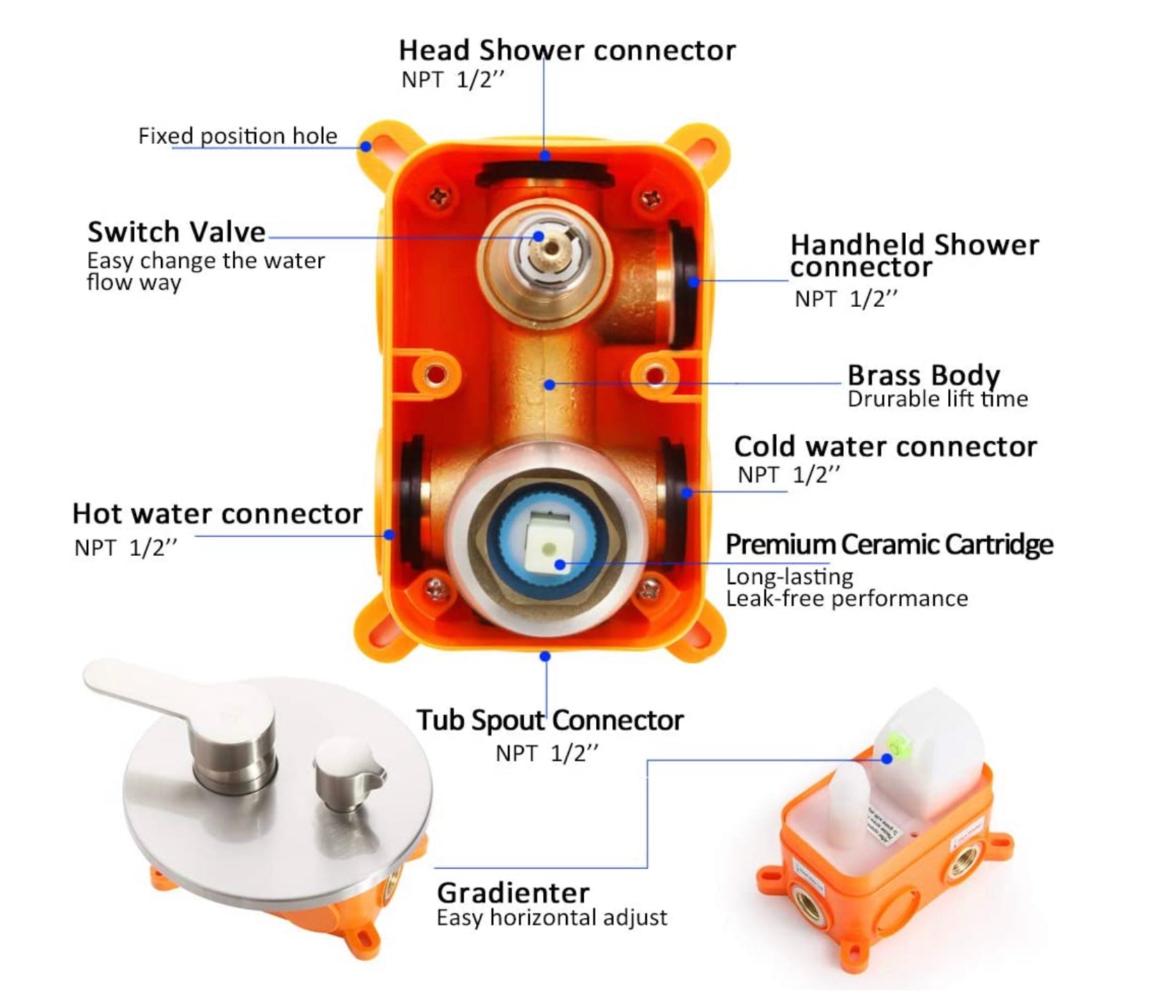 Tub and Shower Faucet Set with Handheld Brushed Nickel Bathroom Rain Mixer Shower System with Tub Spout 10 Inch Shower Head and Handle Set, 3 Function Tub and Shower Trim Kit with Rough-in Valve