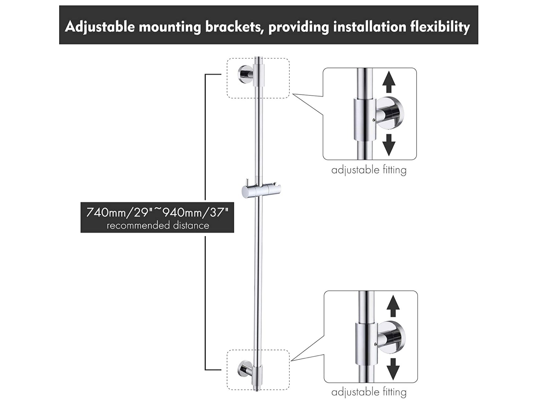 Shower Slider Bar 40 Inches with Adjustable Handheld Shower Head Holder for Bathroom Screw Mounted, SUS 304 Stainless Steel Polished Finish