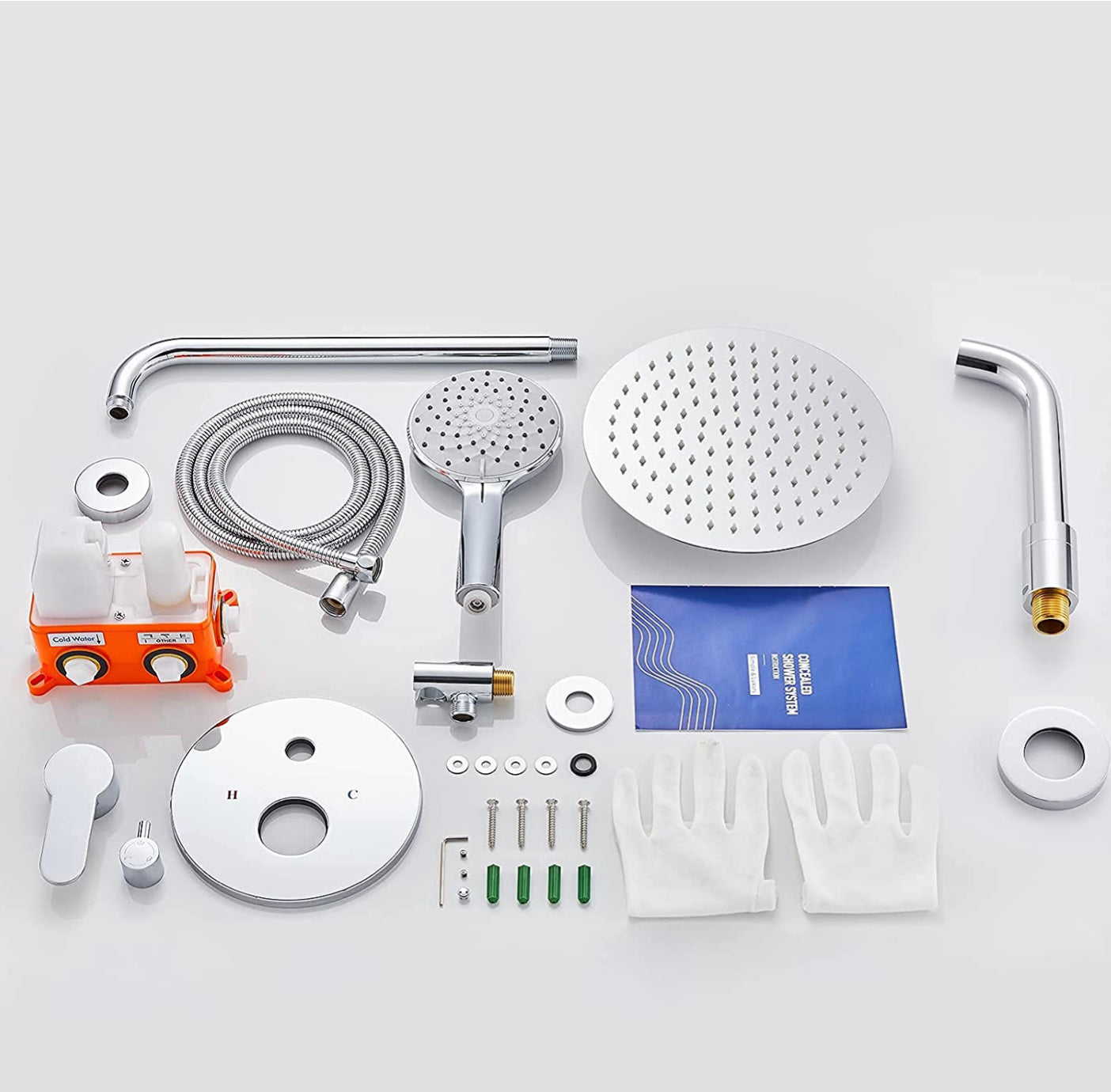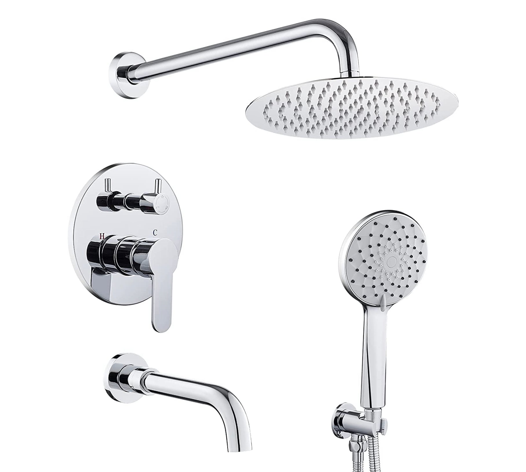 Tub and Shower Faucet Set, Complete Shower System with Tub Spout, 10-in. Rain Shower and 5-Function Handheld Shower, Chrome (Valve and Trim Kit Included)