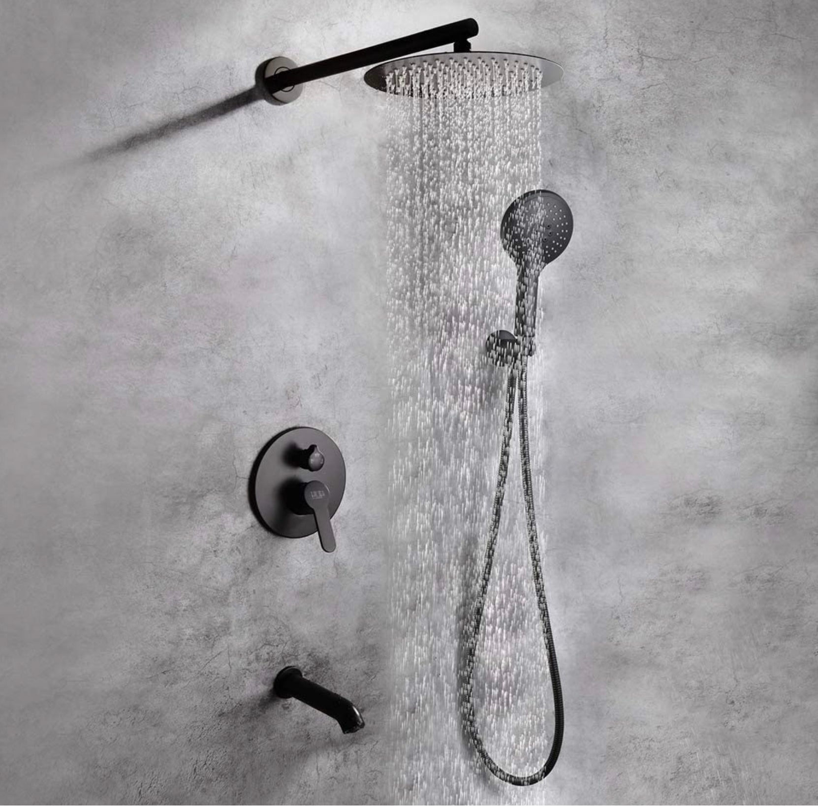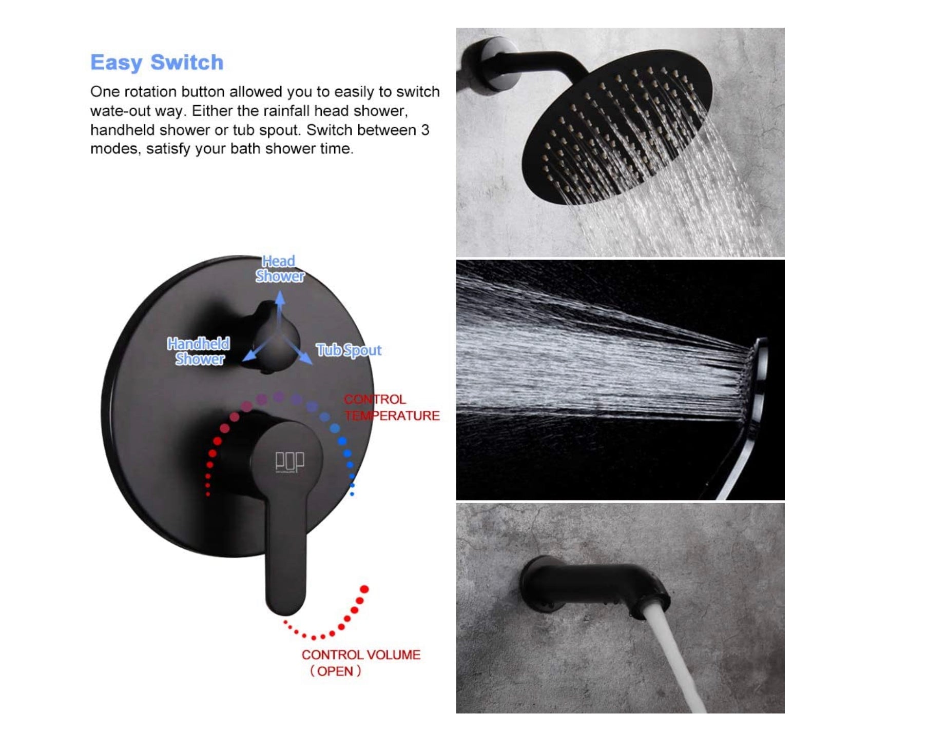 Tub and Shower Faucet Set with Handheld Bathroom Rain Mixer Shower System with Tub Spout 10 Inch Shower Head and Handle Set, 3 Function Tub and Shower Trim Kit with Rough-in Valve